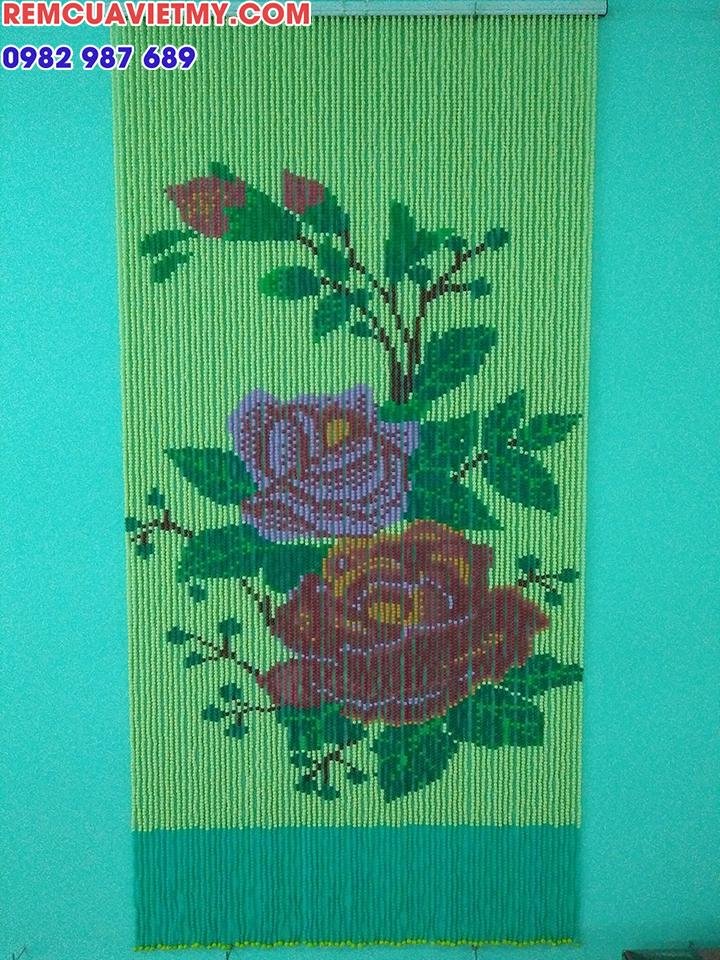 1 Rèm hạt nhựa kết tranh bông hồng