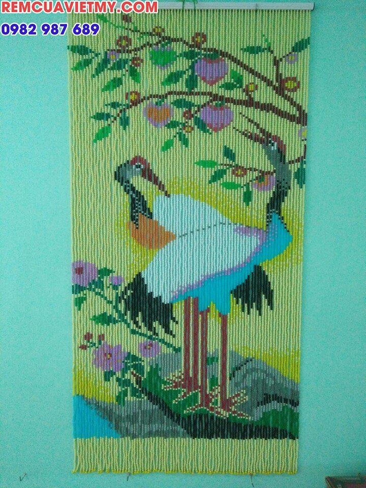 11 Rèm hạt nhựa kết tranh cây tre – con hạc